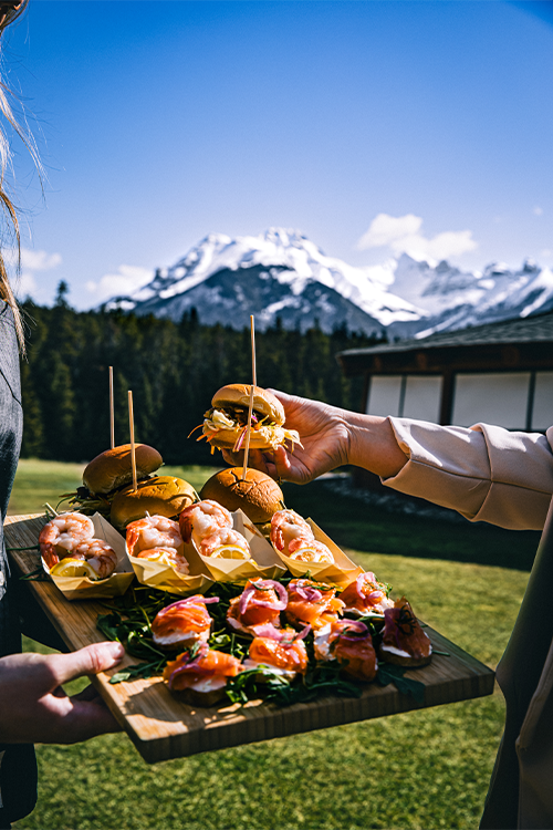 Just 10 minutes from downtown Banff, guests will be in awe the moment they step off the private coach and arrive at Banff Park Ranch. Sweeping 360-degree mountain views and lush forest encircle our private grounds which are steeped in historic Banff charm. Mingle over cocktails and lawn games on the meadow green, then head into the roundhouse where a massive roaring fire & live music await. Our Western buffet includes house-smoked Alberta hip of beef and homestyle sides served with locally crafted spirits & beers. Complete with live entertainment and mountain hospitality, our private event venue is a one-of-a-kind experience that will leave your guests with an unparalleled memory of Banff.