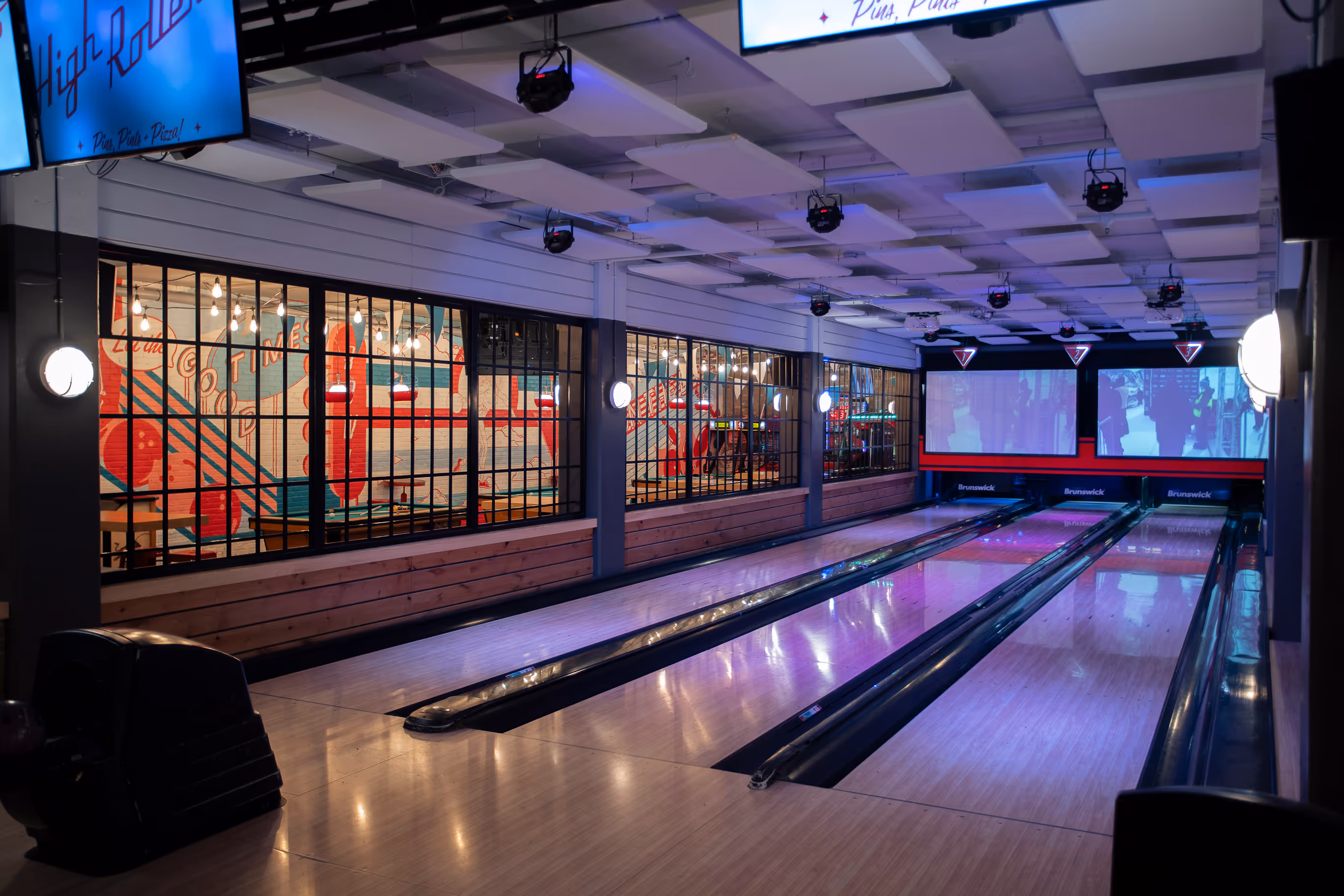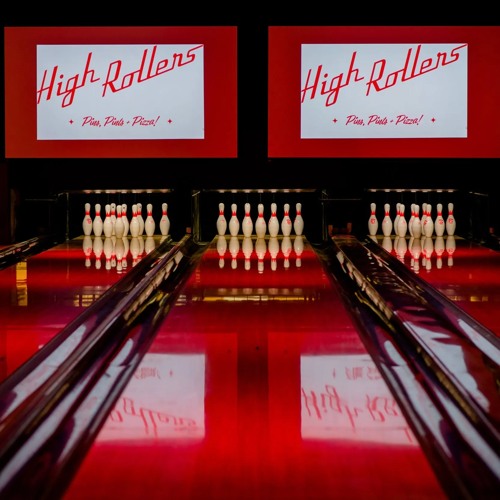 High Rollers is a modern bowling alley & beer hall. The space features a bright vintage interior, an extensive craft beer menu, six ten-pin bowling lanes, three pool tables, and two distinct dining spaces. It is a fun venue for groups and we regularly host private events.