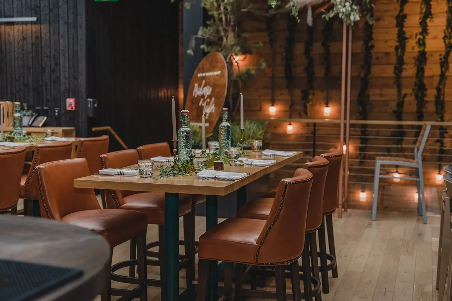 Enjoy an intimate dining experience in our smallest private room complete with one large live-edge table.