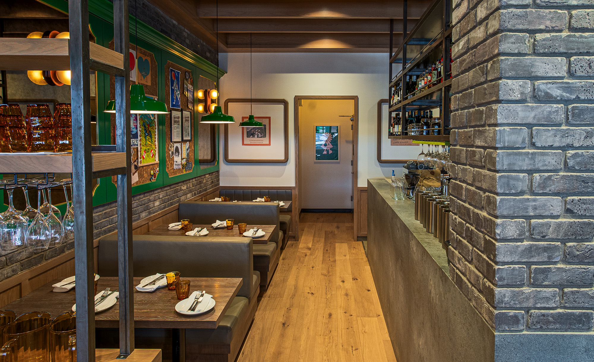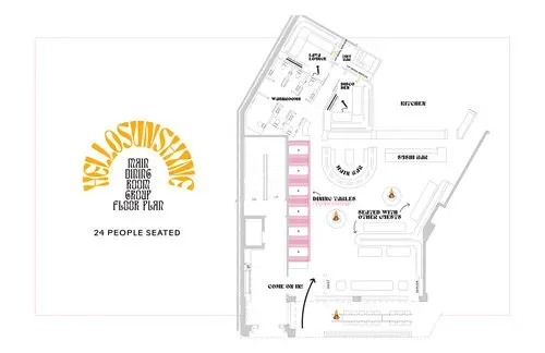 Sound panels (provide a quieter dining atmosphere). Guests are seated at tables of 6-8.