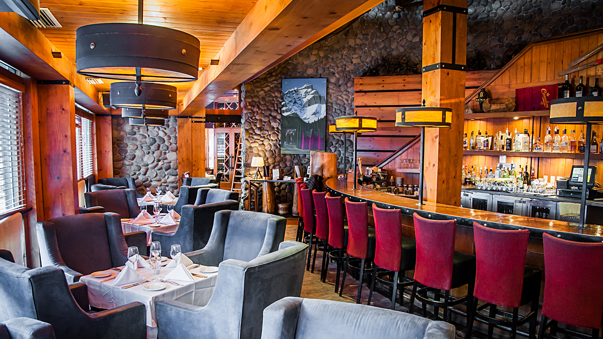 Located at the back of the second floor and adjacent to our state-of-the-art exposed kitchen, The Taps Room features beautiful panoramic windows that frame stunning mountain views. It is the ideal space to host a cozy and completely private event for up to 32 guests. The room boasts unexpected views of Mount Norquay and large retractable windows that will make you feel like you’re dining outdoors.
