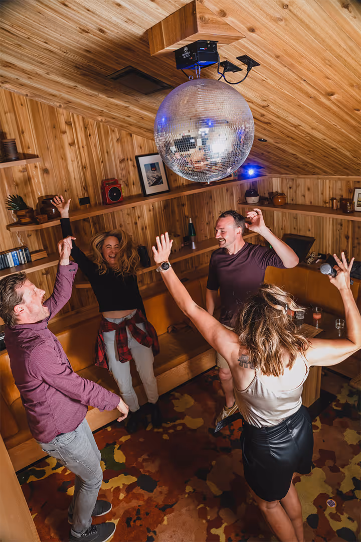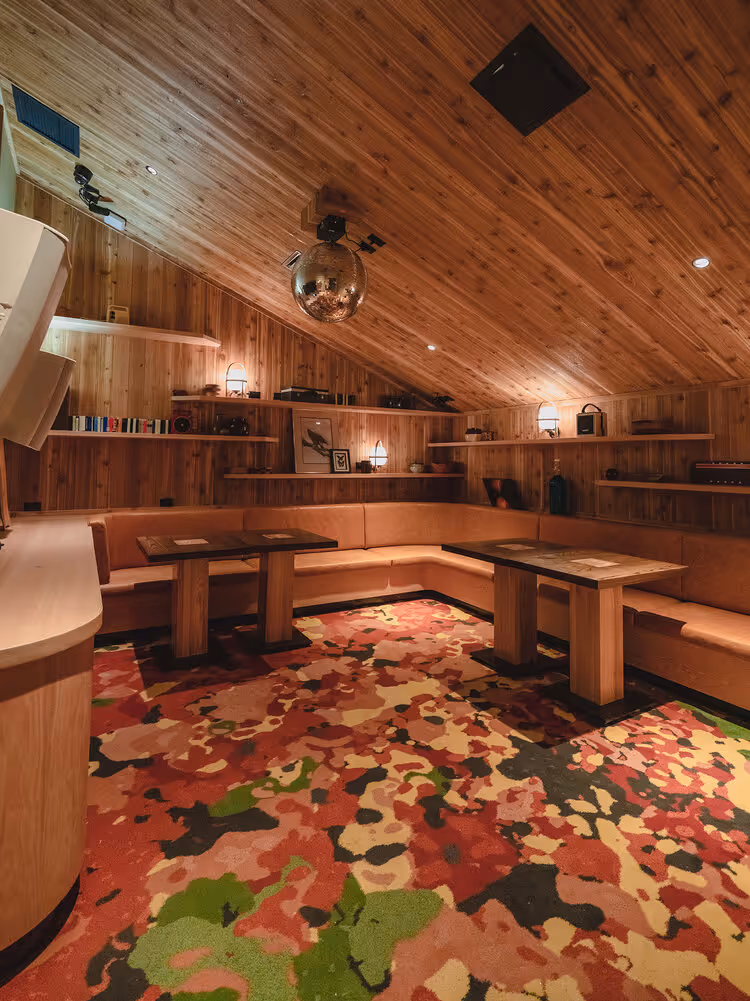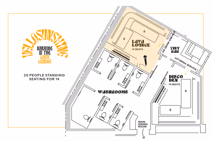 Retro restaurant & karaoke bar featuring eye-catching fire tables, a sushi bar, groovy décor and all the good vibes.