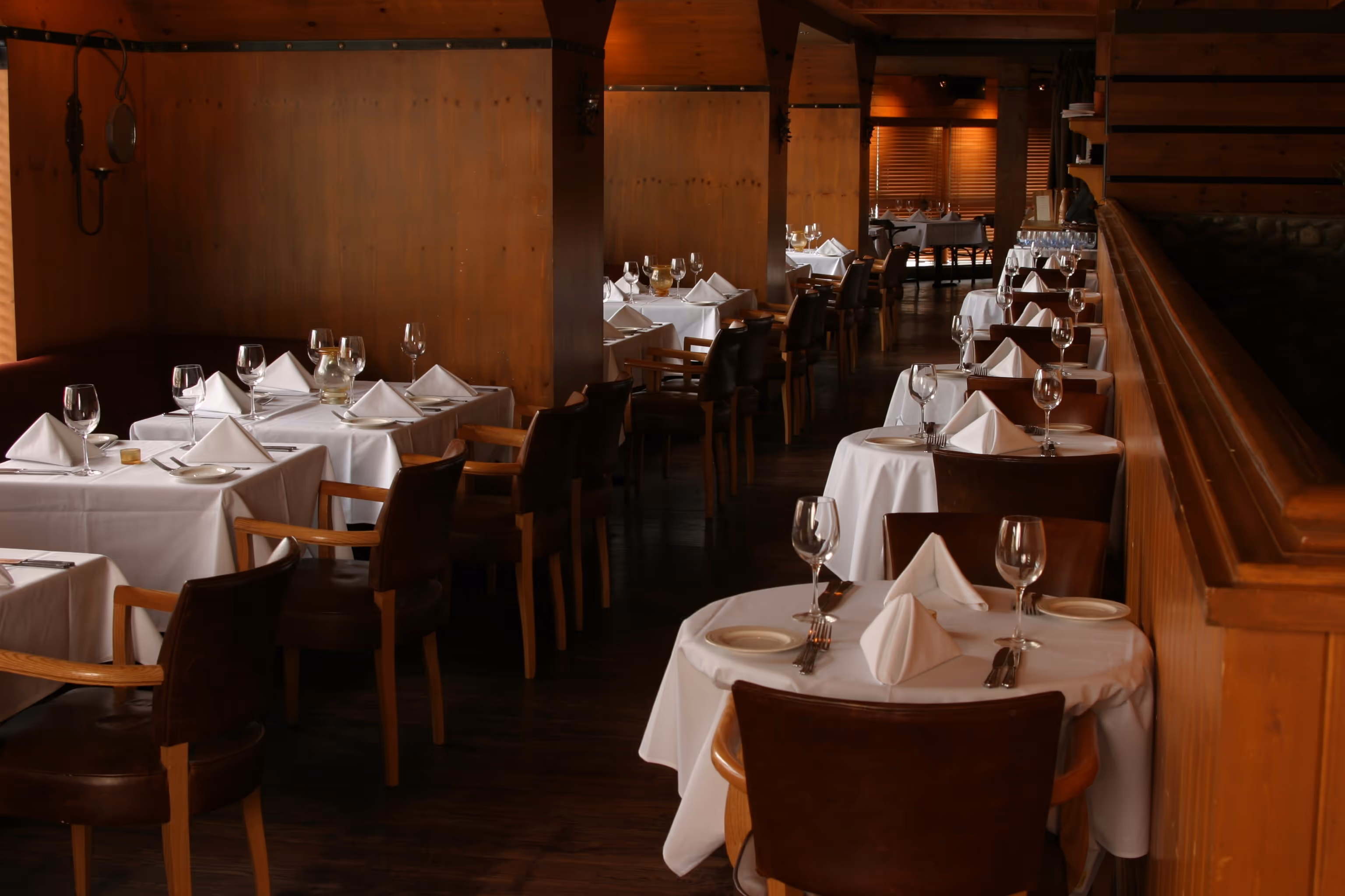Bow River view, single table configuration, saloon doors to ensure total privacy. Space for cocktail reception available prior to dinner service.